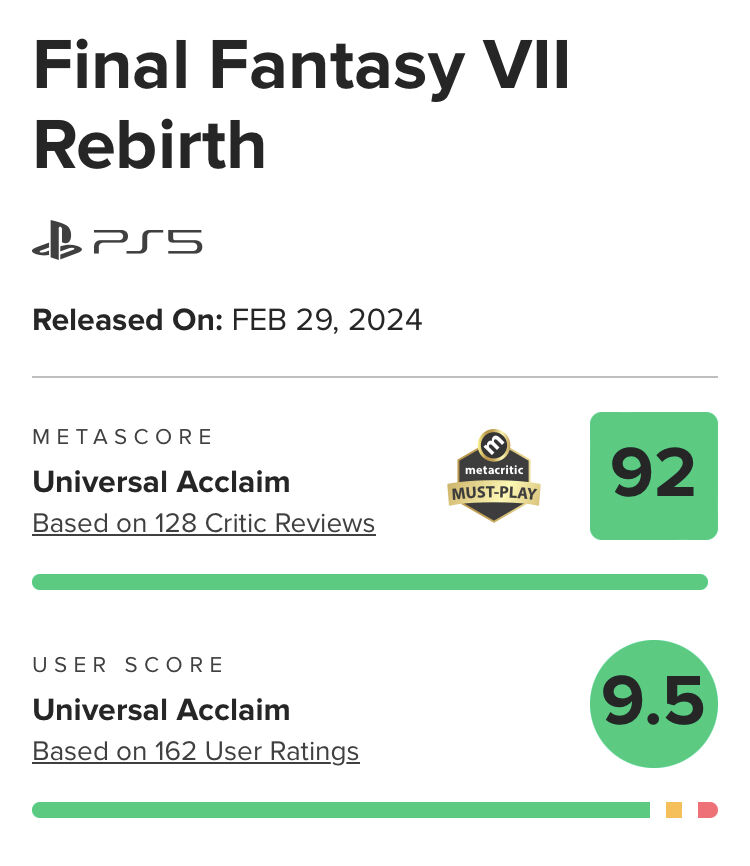 レビューが見える82人の内39人はFF7Rだけか+FFシリーズに10点入れてる単発