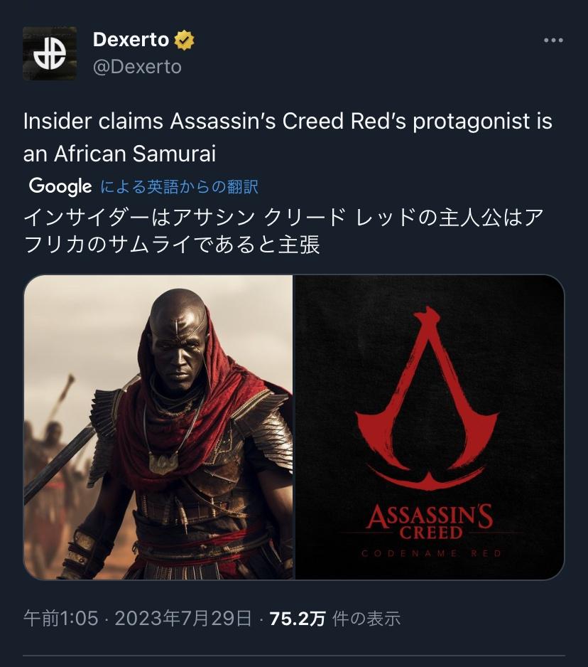 驚きの組み合わせ!新作アサシンクリードの主人公は女サムライとアフリカ人ニンジャ!? 2023/03/21 カテゴリ:ゲームPS関連 mixiチェック アサシン クリードシリーズ 『アサシン クリードシリーズ』(英名:Assassin's Creed Series)は、ユービーアイソフト制作によるフランスのステルスゲーム。『アサシン クリード』とその続編などを含むシリーズ作品の総称である。略称はAC、アサクリ。 プレイヤーはアサシン教団に属するアサシン… 25キロバイト (3,367 語) - 2023年3月2日 (木) 20:28 (出典 nmegames.s3.ap-northeast-1.amazonaws.com) うーん、ちょっと過剰なエキゾチックさを感じるな。女性とアフリカ人が主人公ってだけで、まるで“遊園地”みたいな感じがするような…。でも、まだ詳しい情報は出ていないから、とりあえず期待してみるかな。(出典 日本舞台の新作アサシンクリード、主人公は女サムライとアフリカ人ニンジャにwww)1 名無しさん必死だな :2023/03/17(金) 21:36:16.83ID:NwTRNJ5A0 https://insider-gaming.com/assassins-creed-codename-red-to-feature-both-a-samurai-and-shinobi/ Insider Gamingは、2月にCodename Redがすでに「良い状態」にあり、2人のプレイアブルキャラクターが登場すると報告した。しかし、新たな情報により、Codename Redには侍と忍のキャラクターが登場するとのことで、ゲームのキャラクターに関するより深い洞察を得ることができました。これらのキャラクターが具体的にどのようにプレイされるのかについての詳細は限られていますが、Ubisoftが公式に公開した短いティーザーには、このゲームの女性サムライが登場することが判明しています。もう一人のキャラクターである忍は、アフリカからの難民で、クリードの道を学んだと理解されています。 (出典 日本舞台の新作アサシンクリード、主人公は女サムライとアフリカ人ニンジャにwww) 【驚きの組み合わせ!新作アサシンクリードの主人公は女サムライとアフリカ人ニンジャ!?】の続きを読む タグ :#PS5#アサシンクリード#アサクリ